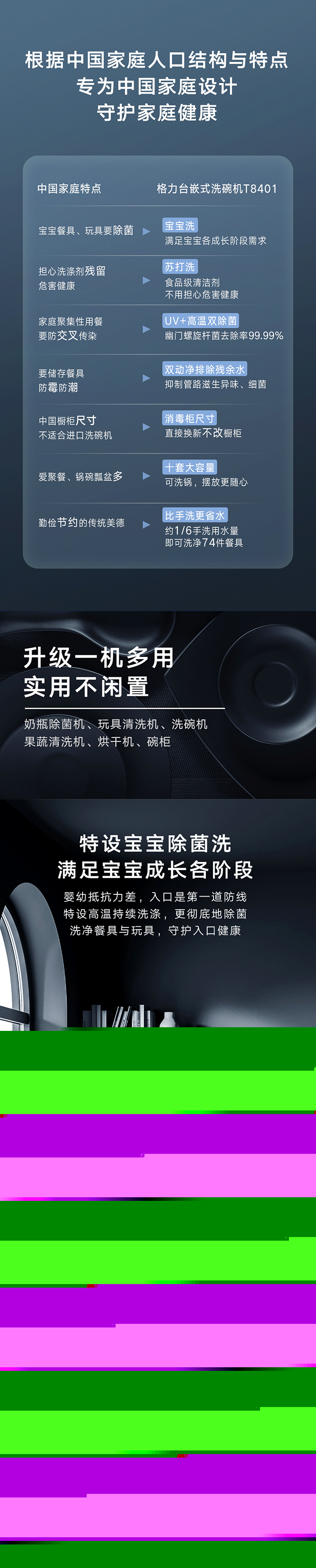 格力健康洗洗碗機(jī),專為中國家庭設(shè)計(jì);洗除排烘存更全能;熱風(fēng)循環(huán)烘干,內(nèi)腔餐具都干爽
